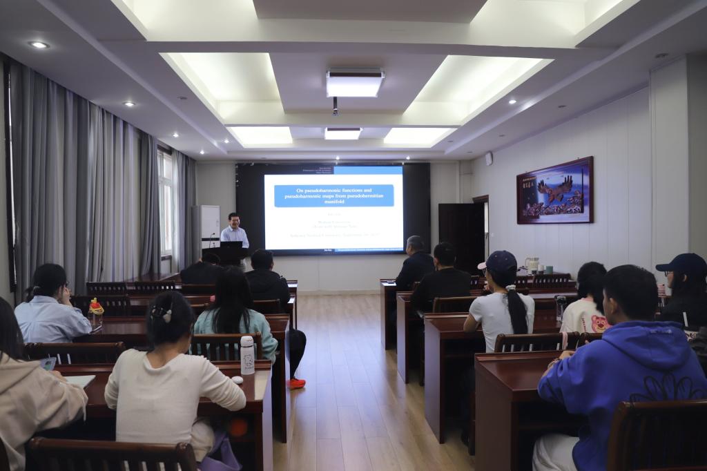 9月19日下午,应数学与统计学院邀请,武汉大学孙俊副教授在学院315会议室作了题为“On pseudoharmonic functions and pseudoharmonic maps from pseudohermitian manifold”的报告。报告会由数学与统计学院副院长韩英波教授主持,部分教师和研究生参加了此次报告会。