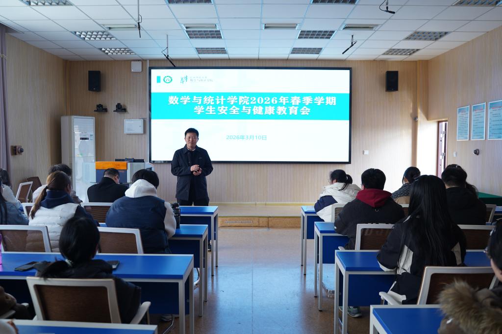 3月10日,数学与统计学院在数学楼507教室召开2026年春季学期学生安全与健康教育会。学院党委副书记葛文鹏,团委书记李帅以及全体学生会干部参加会议。