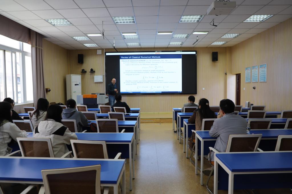 4月24日上午,应数学与统计学院邀请,河南理工大学张永金教授作了题为《Integrated adaptive Physics-informed neural networks for solving partial differential equations》的学术报告。报告会由李世顺教授主持,部分老师和研究生聆听了此次报告。